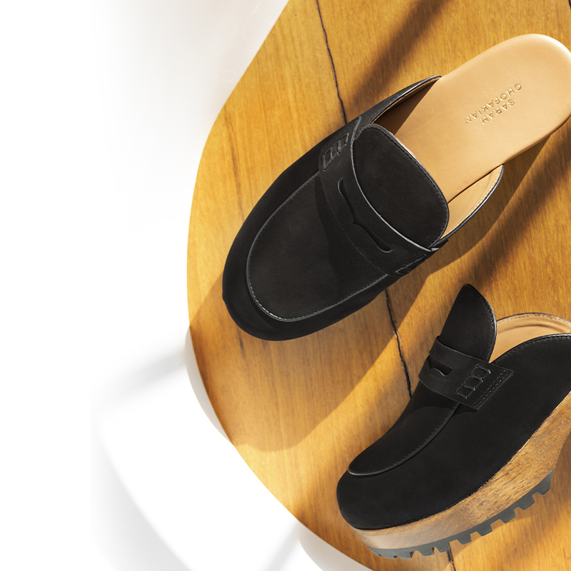 Na Sarah Chofakian, fizemos a nossa versão desse modelo, chamado Clog Sarah. Em 5 versões, eles vêm em camurça azul marinho, preto e cinza ou em couro legítimo preto ou bege. Sua plataforma de madeira clara ou escura tem 3,5 centímetros e o solado tratorado garante estabilidade. Este já é um dos modelos mais vendidos da coleção Verão 2023!