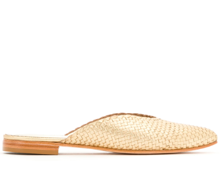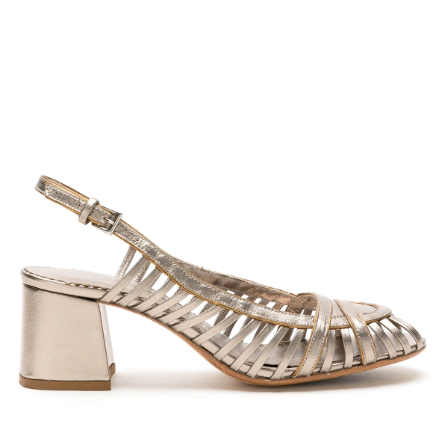 O dourado aquece o azul e traz presença imediata. Dentro das cores de sapatos que combinam com vestido azul, ele funciona melhor em vestidos mais escuros ou em produções que pedem impacto visual controlado.